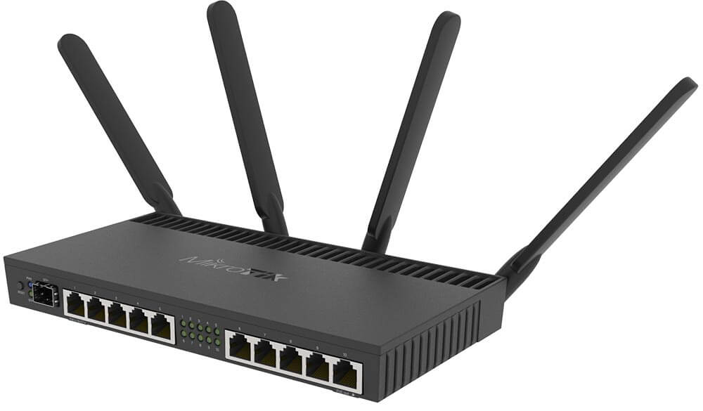 MikroTiK RouterBOARD RB4011iGS+5HacQ2HnD-IN, 1.4 GHz 4 çekirdekli işlemci, 1GB RAM, 1 Adet 10G SFP+ slotu, 10 adet Gigabit ethernet portu, ve dual band 2.4GHz / 5GHz 4x4 MIMO 802.11a/b/g/n/ac 2,5Gbps radyo kartı ile 500+ aktif kullanıcısı bulunan ağ yapıları için hepsi bir arada çözüm sunmaktadır. Ürün LAYER 3 Switch özelliklerinin tamamını sunmakla birlikte Standart RouterOS işletim sisteminin tüm özellikleri ile birlikte gelmektedir. Orta ölçekli ağların tüm ihtiyaçlarını karşılayacak benzersiz teknik donanımı ve RouterOS işletim sistemi ile ağ yönetiminizi hiç olmadığı kadar esnek hale getirebilirsiniz. Cihaz sunduğu yazılım ve donanım özellikleri ile aynı anda 500+ aktif kullanıcılı ağ yapılarının Dinamik yönlendirme, Hotspot, PPPoE, Firewall, LOG,MPLS, Gelişmiş QoS, Yük Dengeleme (Load Balancing), Bonding, VPN,BGP,OSPF gibi ihtiyaçlarını karşılayabilmektedir. Bu özelliklerin yanısıra ürünün 10'ncu ethernet portu 24 Volt Pasif PoE çıkışı verebiliyor, bu özellik sayesinde PoE destekli cihazlarınızı ilave adaptör kullanmadan çalıştırabilirsiniz.